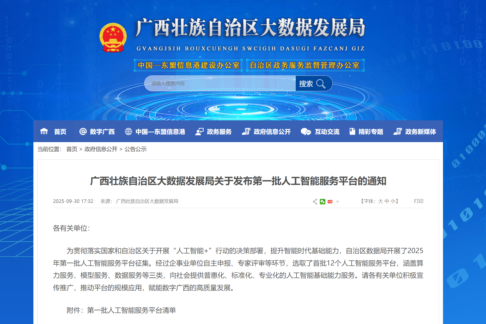北部灣大數(shù)據(jù)交易中心成功入選廣西首批人工智能服務(wù)平臺(tái)名單